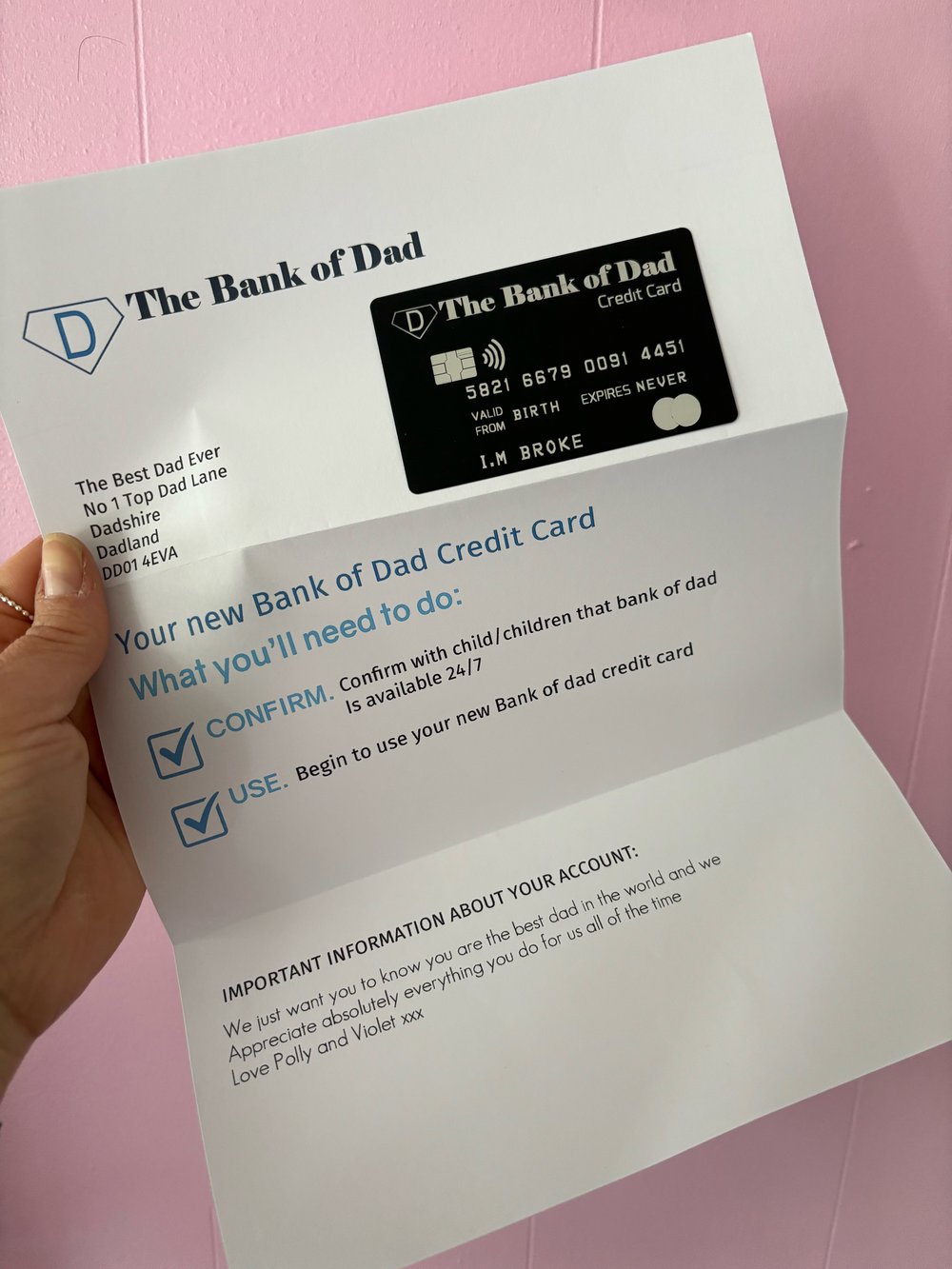 Bank of dad letter with metal card *personalised with a message*