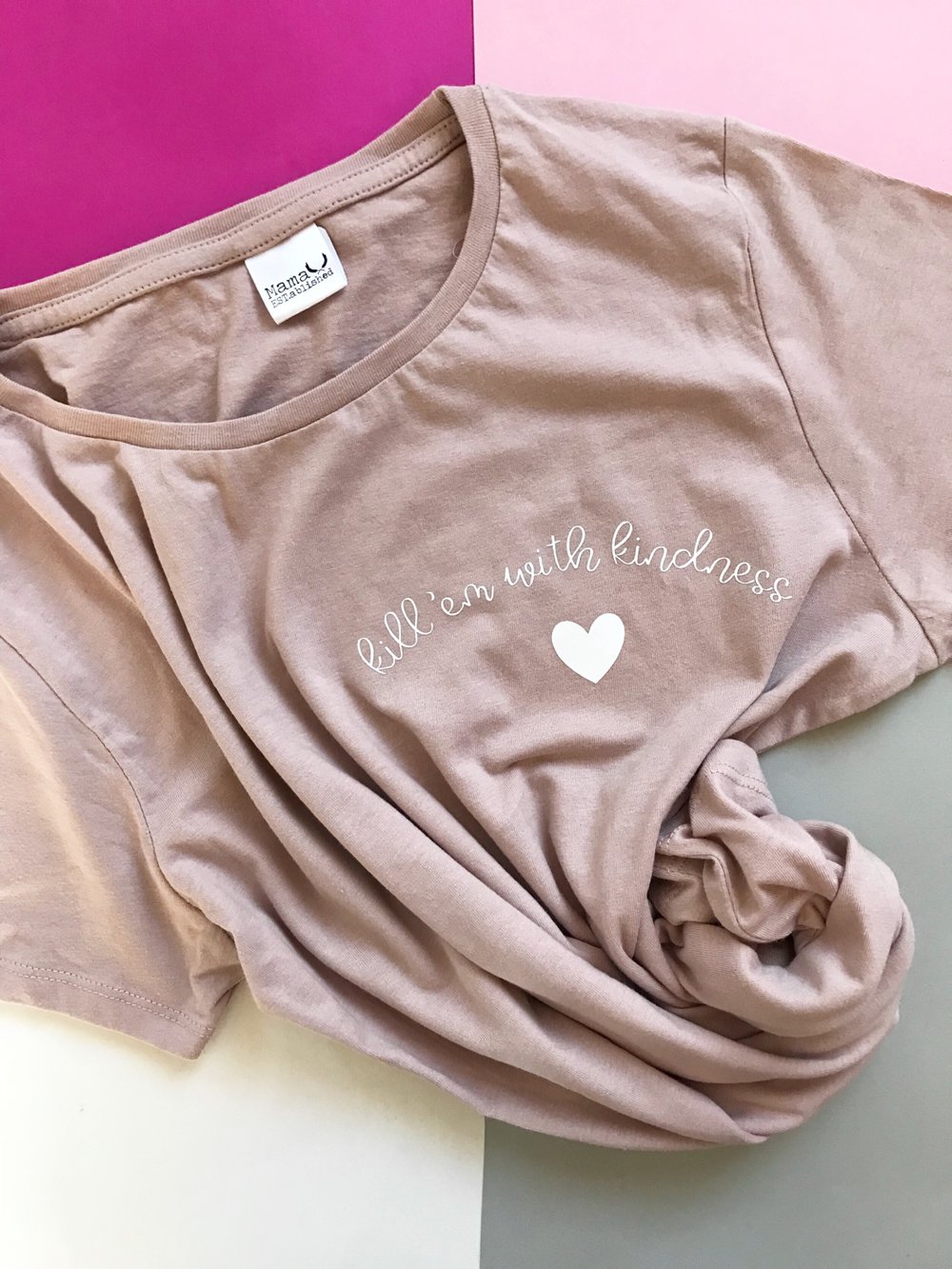 triblend supersoft cotton tee in a peachy pink colour with our “Kill ‘Em with kindness” slogan